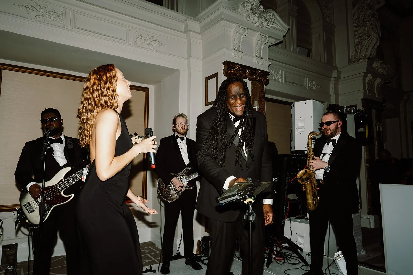 The performance began during the drinks reception, where guests enjoyed elegant live arrangements that complemented the venue’s stunning surroundings. As the evening progressed, the band gradually built the energy of the performance.